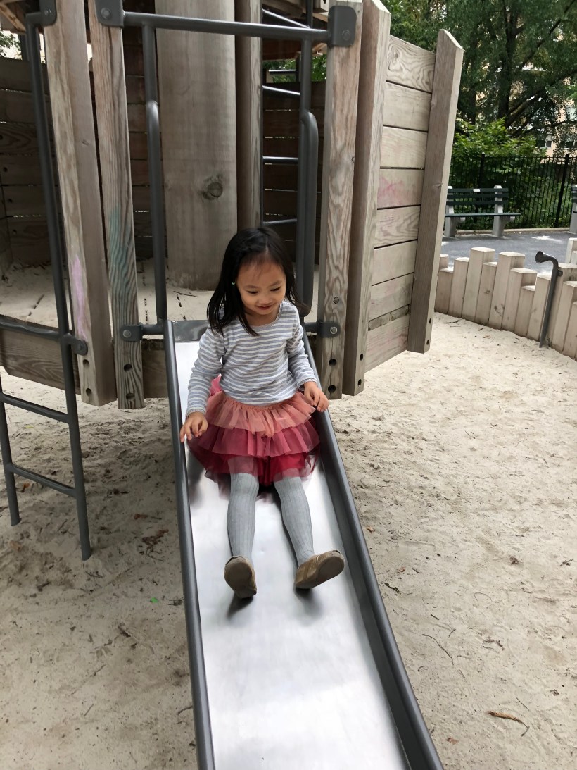 週日早上,Chelsea 去林肯中心旁的音樂中心試上鋼琴課,回家的路上,經過中央公園西側的一個兒童遊戲場,開心地在裡面玩。
