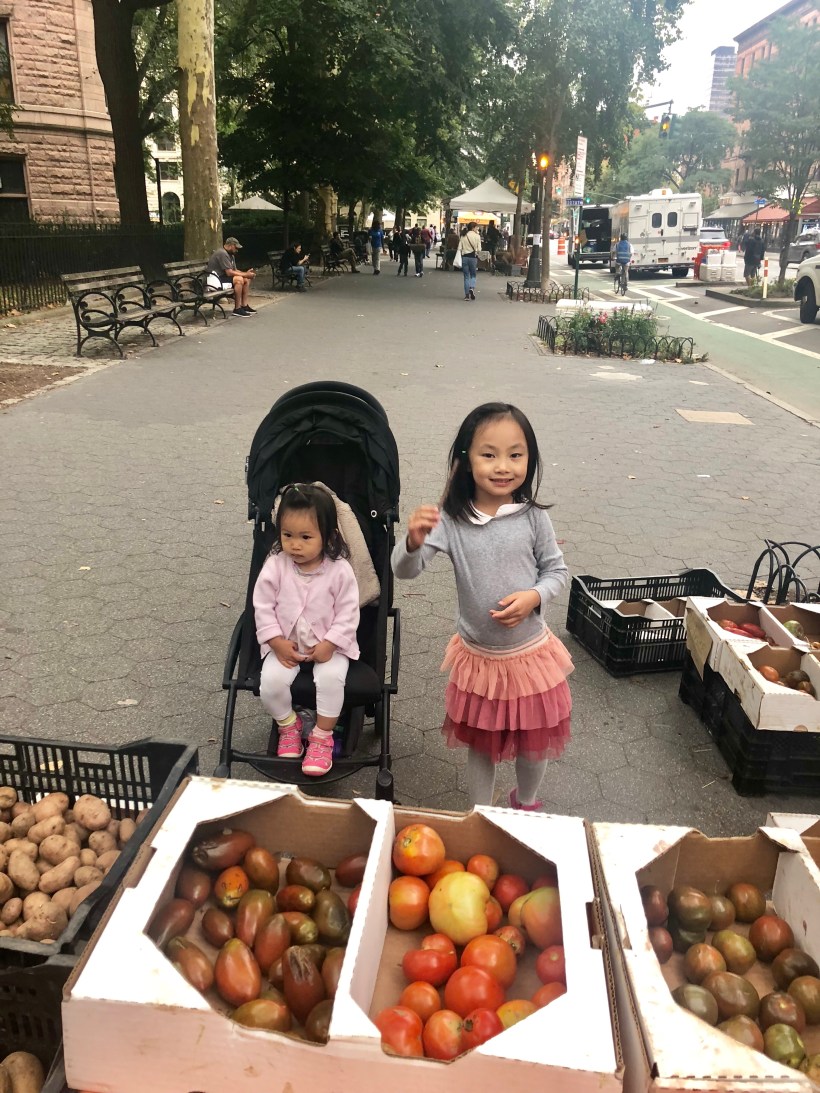 週日下午,姐妹倆一起去農民市場買蕃茄,兩人看到各式各樣的蕃茄,興奮地每顆都想拿著把玩一番。
