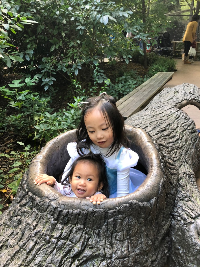 週日,Bronx Zoo 舉辦萬聖節派對,小孩子們都變裝參加,Chelsea 扮成冰雪奇緣裡的公主來共襄盛舉,Florence 也跟著一起在動物園裡玩。