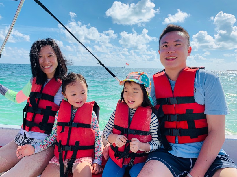 我們跟 Chelsea 從小一起長大的好朋友大寶一家一起出海玩拖曳傘,兩個小朋友既期待又興奮地在船上有說有笑。
