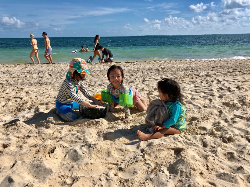 這禮拜的感恩節假期,我們帶著 Chelsea 與 Florence 到墨西哥的 Cancun 跟芝加哥的好朋友們一起度假,姐妹倆一到飯店,就先來沙灘報到,在溫暖的陽光下,堆沙堡玩沙。