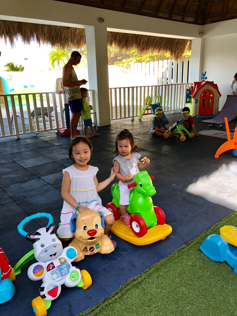 飯店裡附設的兒童遊戲區有許多小朋友的玩具跟戲水設施,是烈日下避暑休息的好去處,也是 Florence 流連忘返的地方。