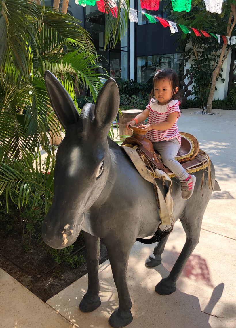 五天的時間很快地就過去,我們要打道回府,臨走前,Florence 見到廣場上墨西哥派對的小驢裝飾,意猶未盡地騎驢拍照留念。