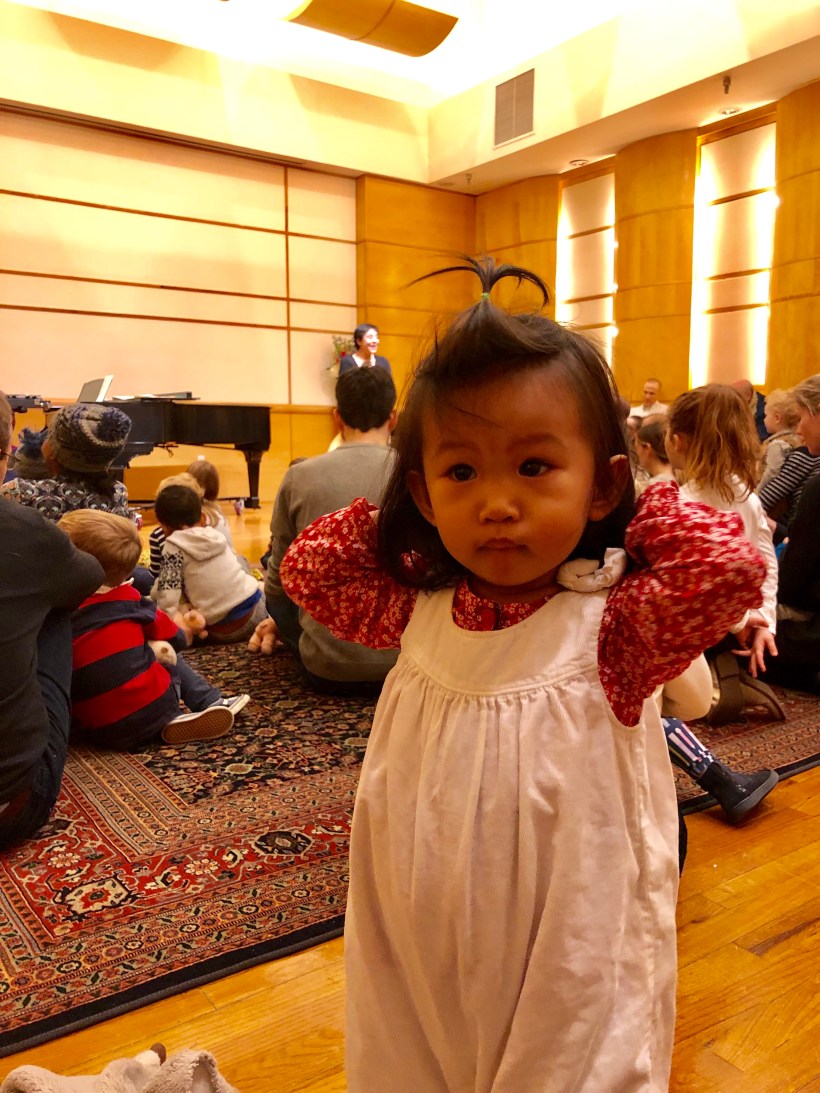 這週末,Chelsea 一早就出門上小提琴課,由於音樂教室有安排聖誕節日音樂會,Florence 也跟著一起去接受音樂的洗禮,受姐姐學習樂器的影響,Florence 接觸到許多的音樂知識,對從小就喜愛音樂,節奏感十足的 Florence 真是如魚得水。