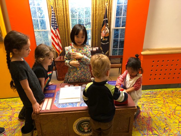臨走前,Chelsea 在兒童總統桌,假裝簽署法案,Florence 在一旁忙著磨墨 XD