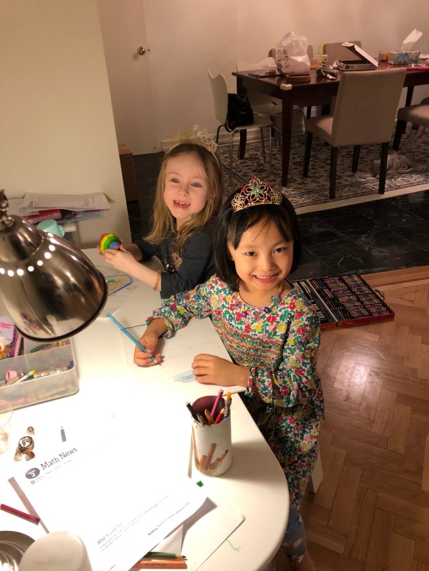 週日,Chelsea 以前托兒所的同學 Zoe 來家裡玩,兩人一起畫畫,在家裡扮家家酒。