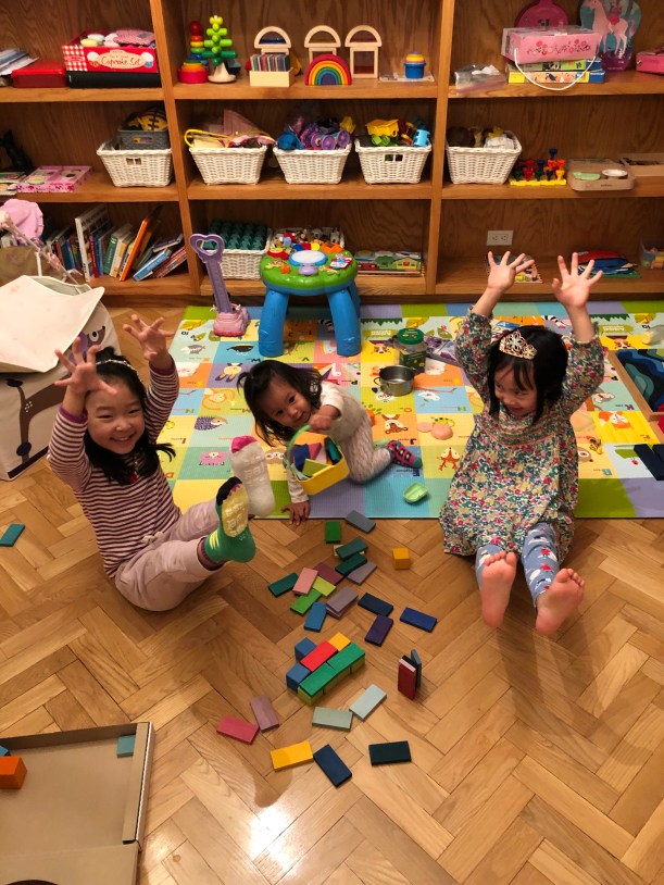 好朋友 Amy 也一起到家裡 play date,Florence 跟著姐姐們在家裡玩積木、捉迷藏,大家都玩得意猶未盡。