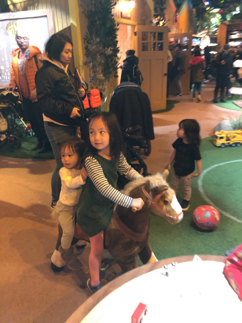 假期裡,Chelsea 跟 Florence 整天都玩在一起,這天來到一間紐約新開的玩具店,店裡提供許多室內兒童遊戲設施,姐妹倆玩得不亦樂乎。