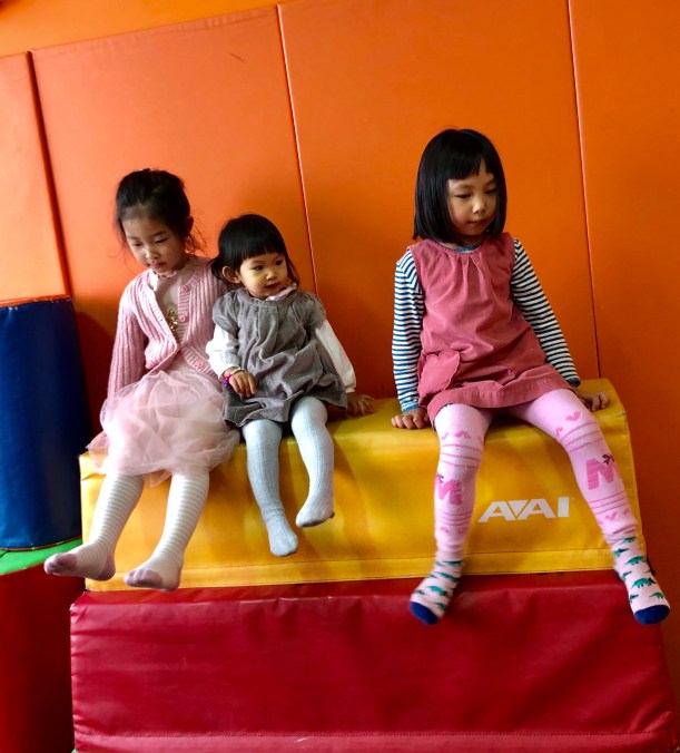 週末由於天氣冷,除了去公園滑雪外,我們幾乎都在室內活動。週六下午, Chelsea 跟 Florence 到好朋友 Amy 大樓裡的室內兒童遊樂區玩,姐妹倆在軟墊上,爬上爬下,玩得很盡興。