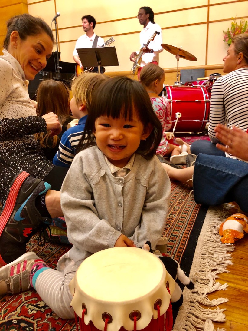 這週末,Chelsea 上小提琴的音樂教室舉辦小朋友搖滾音樂會,介紹電吉他、貝斯與鼓等樂器給小朋友們認識,Florence 欣賞音樂,聽得很入神。