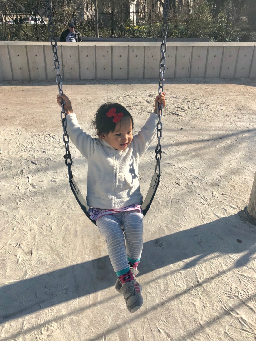 Chelsea 上完小提琴課,回家吃飯、午休後,在陽光明媚的午後,到公園裡的兒童遊戲區玩。