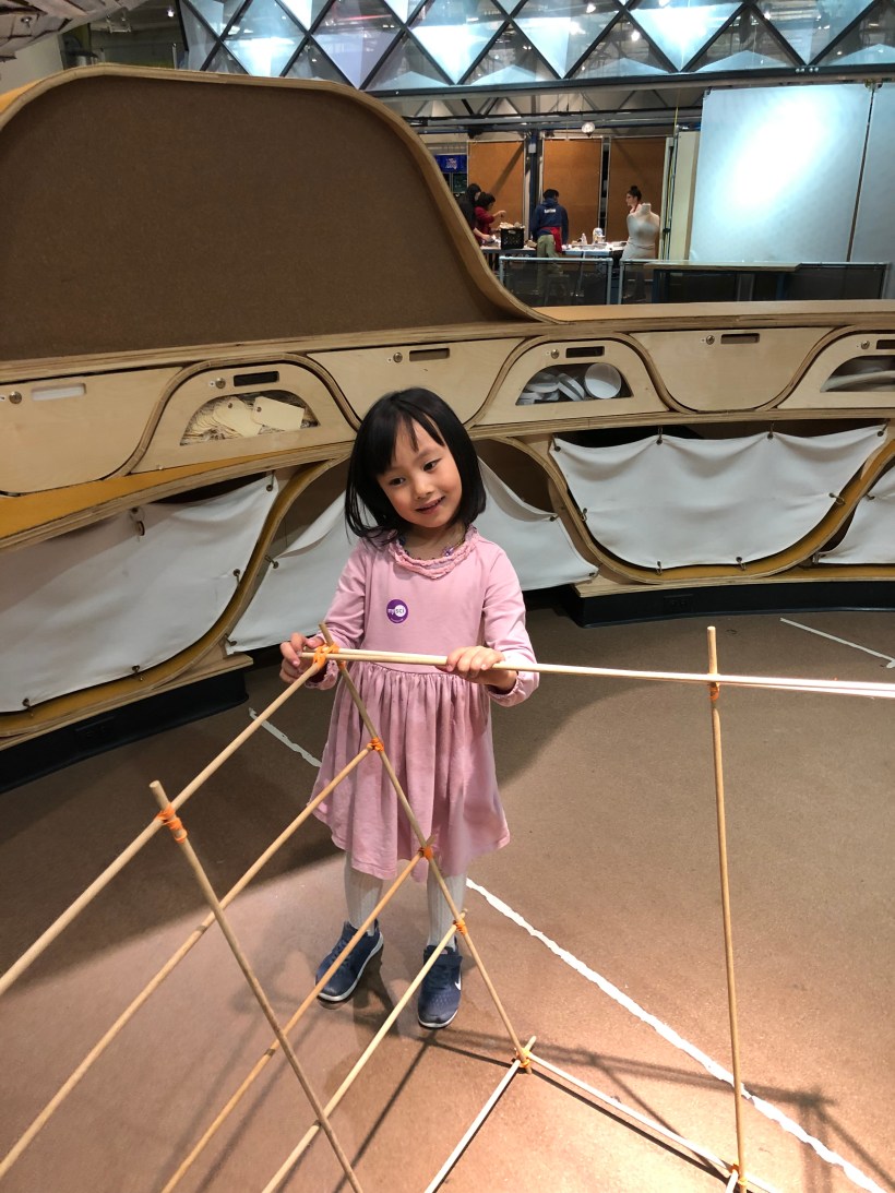 週日,皇后區的科學博物館開放免費參觀。我們去 Flushing 吃午飯,順便帶 Chelsea 跟 Florence 到附近的科學博物館玩,Chelsea 很專心地用木棍搭房子,一直玩到閉館才依依不捨地離開。