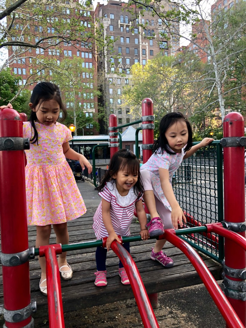 園遊會結束後,姐妹倆跟著好朋友 Amy 來東河邊的河濱公園玩,這個公園有許多遊樂器材與滑梯,三人ㄧ直玩到太陽下山才善罷甘休地回家。