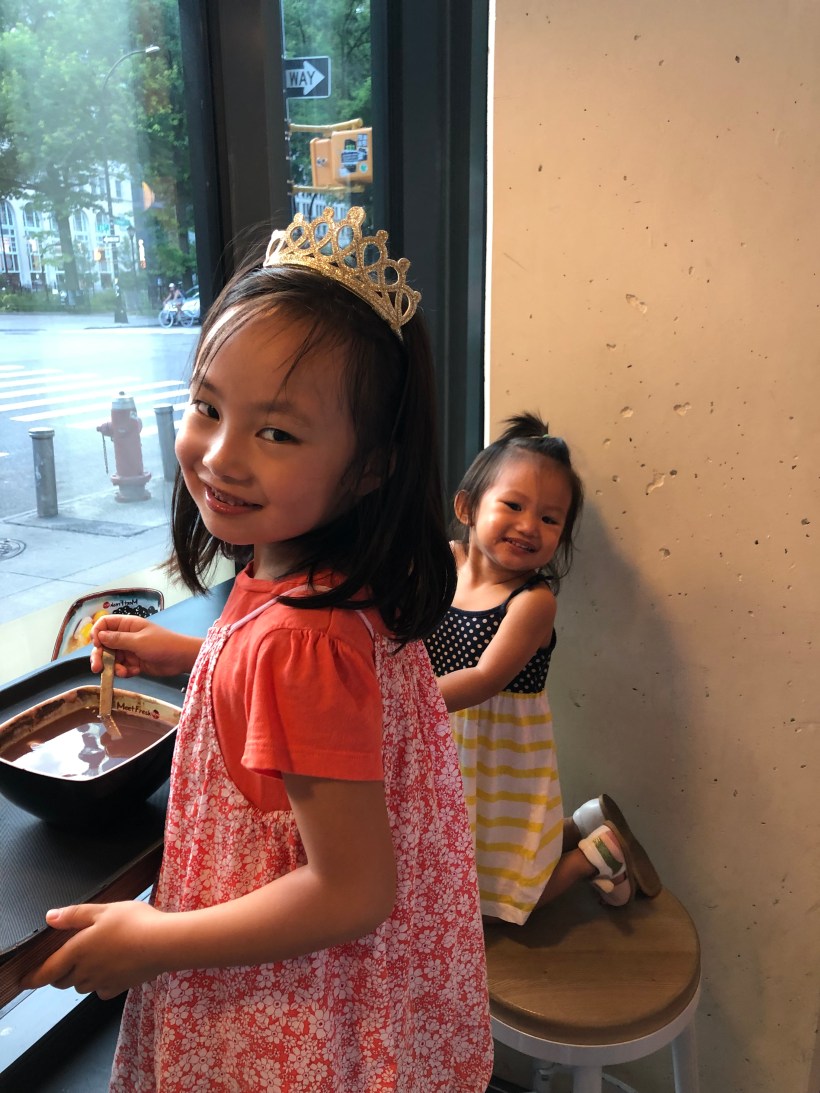 週日晚上,我們全家出門吃飯,回程經過東村Chelsea 跟 Florence 最愛的鮮芋仙芋圓店,一人點一碗紅豆跟杏仁湯芋圓,大快朵頤。
