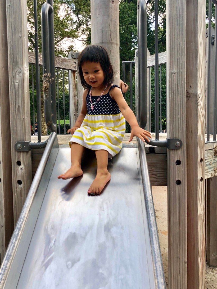 Florence 則開心地在附近的公園玩,溜滑梯現在一點也難不倒 Florence,自己爬上爬下地玩了好幾回,主動要擺 pose 拍照。