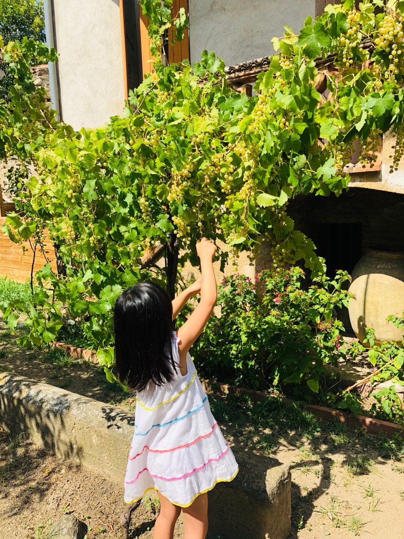 第三天,我們坐火車到姑丈位於法國南部-加泰隆尼亞地區的老家度假,老家院子裡結實累累,葡萄、苦橙與無花果豐收,Chelsea 與 Florence 興奮地採收水果。