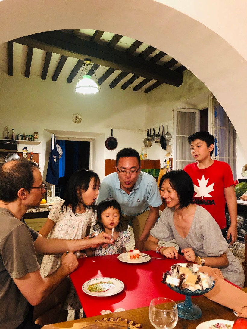 晚上,我們全家在家裡慶生與慶祝阿姑、姑丈的十八年結婚紀念日,時光飛逝,爸爸十八年前跟著全家一起來這裡參加阿姑的婚禮,一轉眼現在多了一群小孩一起慶祝。
