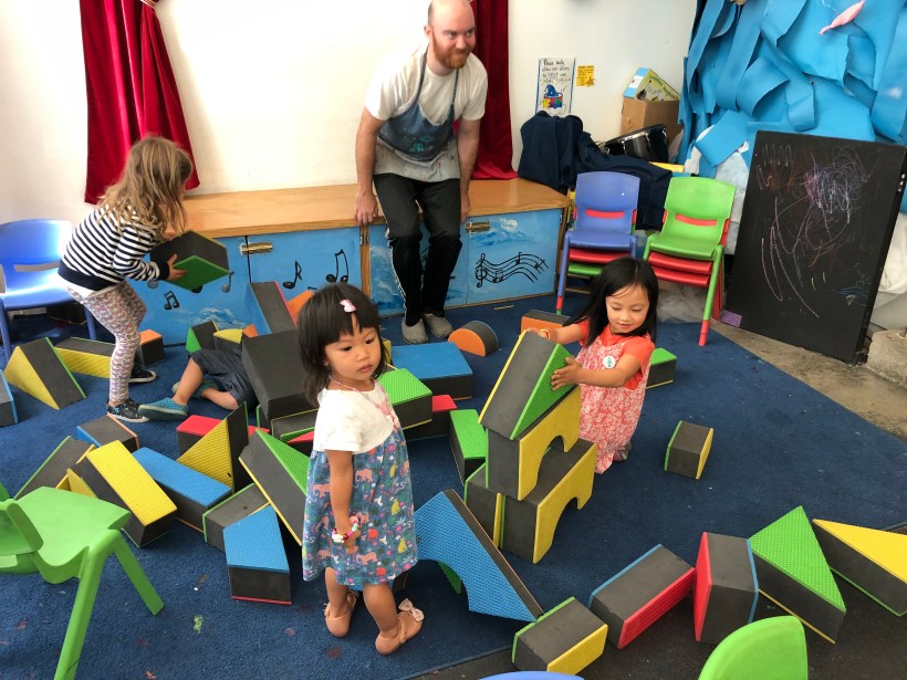 這週末,Chelsea 跟 Florence 到位於紐約下城西村的兒童美術館玩,兩人一開始先來幼兒兒童遊戲室畫畫、堆磚塊積木。