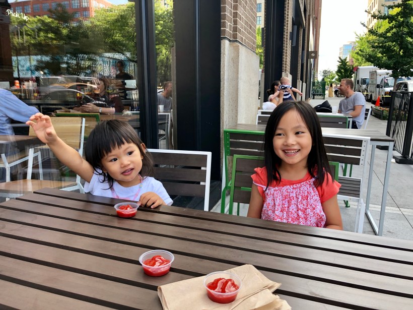 勞作了一上午,Chelsea 提議中午要到附近的一間 Shake Shack 吃飯,姐妹倆一人點了一份招牌漢堡、薯條跟飲料,大快朵頤一番。
