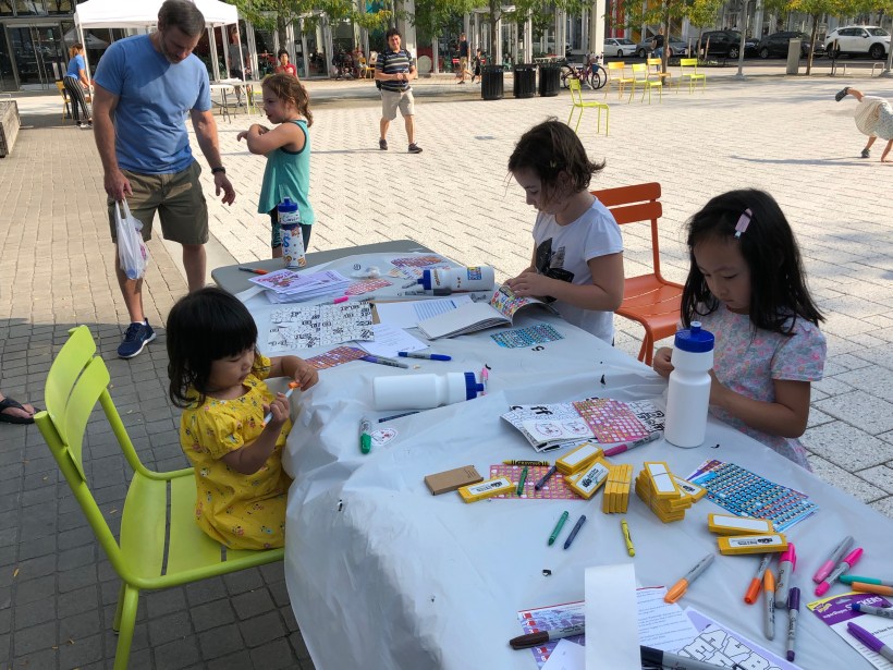 這週末,哥大在哈林區的新校區落成,舉辦活動讓小朋友們響應環保,Chelsea 跟 Florence 認真地佈置著自己的水壺,以後出門都要用水壺喝水,減少寶特瓶的使用。