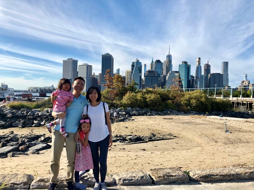 Florence 也跟著姐姐們一起玩,因為上手得很快,得意地自己到處溜來溜去。溜冰場正對著曼哈頓下城金融區,摩天大樓僅在一河之隔,一邊溜冰還可以一邊欣賞風景。
