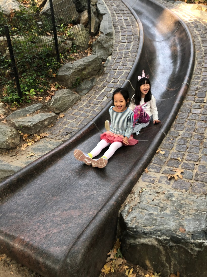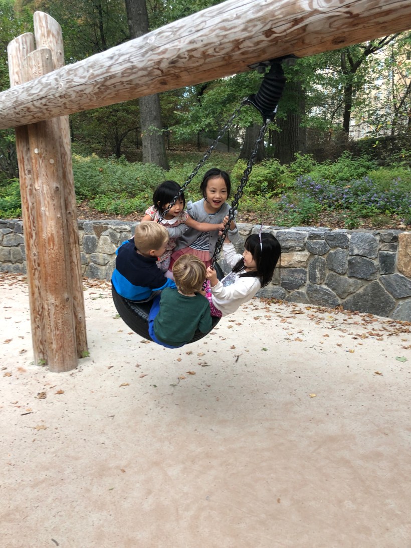 這週末,Chelsea 跟 Florence 到中央公園的兒童遊戲場玩,Chelsea 碰見了以前的同學 Meli,大夥一起玩輪胎旋轉鞦韆。