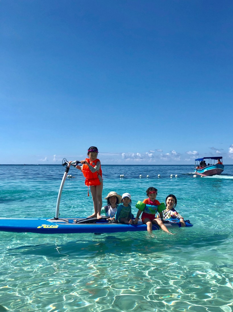 第一站來到宏都拉斯的 Roatan,這個島的沙灘海水清澈、風平浪靜,很適合遊憩玩水,我們租了一些浮板,小孩子們玩得不亦樂乎。
