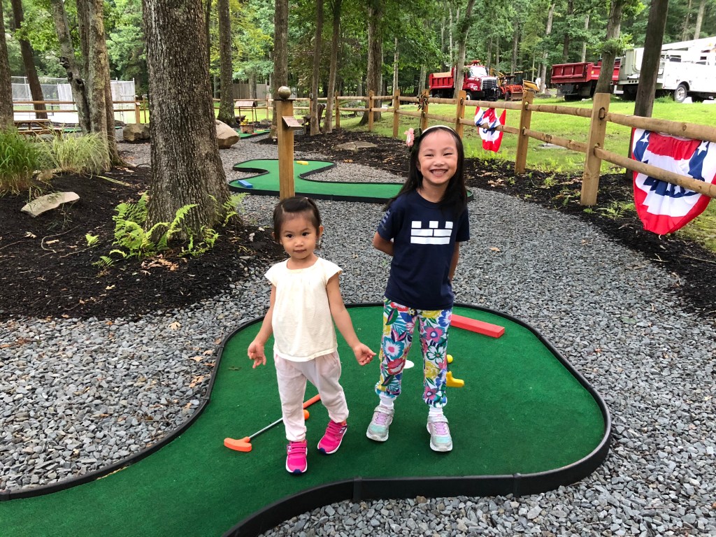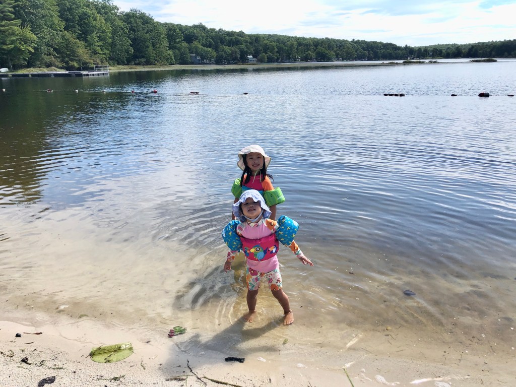 September 12, 2020 by pinghantsai Leave a comment Chelsea & Florence Tsai – Vacation in Pennsylvania – September 2020 勞動節的長週末,我們在賓州郊外租了一間小度假屋,抓住夏天的尾巴,好好享受自然風光。度假小屋的社區有一個私人小湖沙灘,Chelsea 與 Florence 迫不及待地要到湖裡游泳、玩水。 社區的活動中心附設迷你高爾夫球場,姐妹倆打高爾夫打得意猶未盡,每天都得來報到,練練手感。 好朋友 Nunu ㄧ家週末來找我們玩,三個女孩在屋子旁的樹林裡,玩得不亦樂乎,特別喜歡在吊床上盪來盪去。 晚上,我們在樹林裡生火烤棉花糖,姐妹倆ㄧ邊烤一邊玩仙女棒,玩得很盡興。 我們也到附近州立公園的湖裡划船,姐妹倆很喜歡幫忙划槳,划得不亦樂乎。