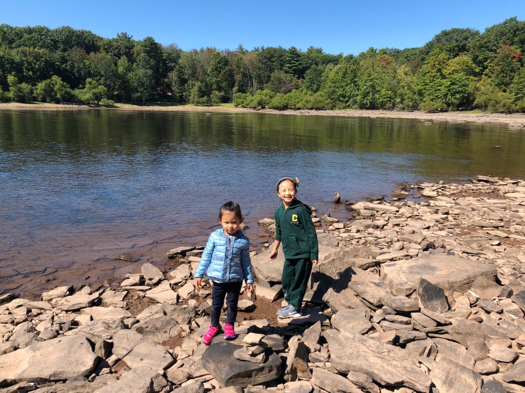 September 26, 2020 by pinghantsai Leave a comment Chelsea & Florence Tsai – Another weekend in Pennsylvania – September 2020 這週末,我們又來到在賓州租的度假屋玩,九月進入中旬,天氣漸漸轉涼,Chelsea 跟 Florence 沒能玩水,改到山林裡健行。 這條步道環著湖繞了一周,全長 3.5 英里,姐妹倆半路在湖邊的岩石灘上休憩,一路邊走邊玩,順利地完成了兩人第一個走完全程的山林步道。 天氣漸涼,蘋果的季節隨之而來,我們也到賓州的一個農場來採蘋果,姐妹倆看到結實纍纍,各式各樣品種的蘋果,很認真地採收。