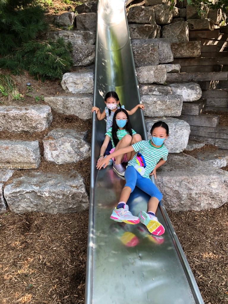 Chelsea & Florence Tsai – Go to Governors Island – September 2021 September 25, 2021 by pinghantsai Leave a comment 這週末,我們跟 Chelsea 的同學 Sofia 一家相約從上東區的東河碼頭坐渡輪到曼哈頓南端的華爾街轉接駁船到位於出海口的總督島玩。總督島長期以來為軍事基地,負責由海上防衛紐約市的任務,近年來開放供民眾休憩,島上也修建許多觀光與遊樂設施。 隱藏於小山坡裡的滑梯,是小朋友們必造訪的島上景點,Chelsea、Florence 與 Sofia 玩滑梯玩得不亦樂乎。 這禮拜我們也過中秋節,姐妹倆在家享用了一頓豐盛的晚餐後,吃柚子與月餅慶祝中秋。 Share this: Click to share on X (Opens in new window) X Click to share on Facebook (Opens in new window) Facebook Like Loading... Related