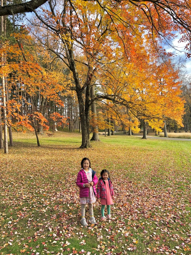這週末,秋高氣爽,我們帶著 Chelsea 跟 Florence 到紐約上州的 Storm King 藝術中心郊遊賞楓葉,Storm King 藝術中心以田野山林間大型藝術創作展出聞名,展區風景優美,視野遼闊。這個以光為主題的藝術創作,深受姐妹倆喜愛,兩人在作品旁的草地來回穿梭,從不同角度欣賞作品。這個漂浮重物創作,別出新裁,很有創意,姐妹倆好奇地打量著重物如何被懸掛於半空。臨走前,正巧經過幾棵大楓樹,轉紅的樹葉,有濃濃的秋意。