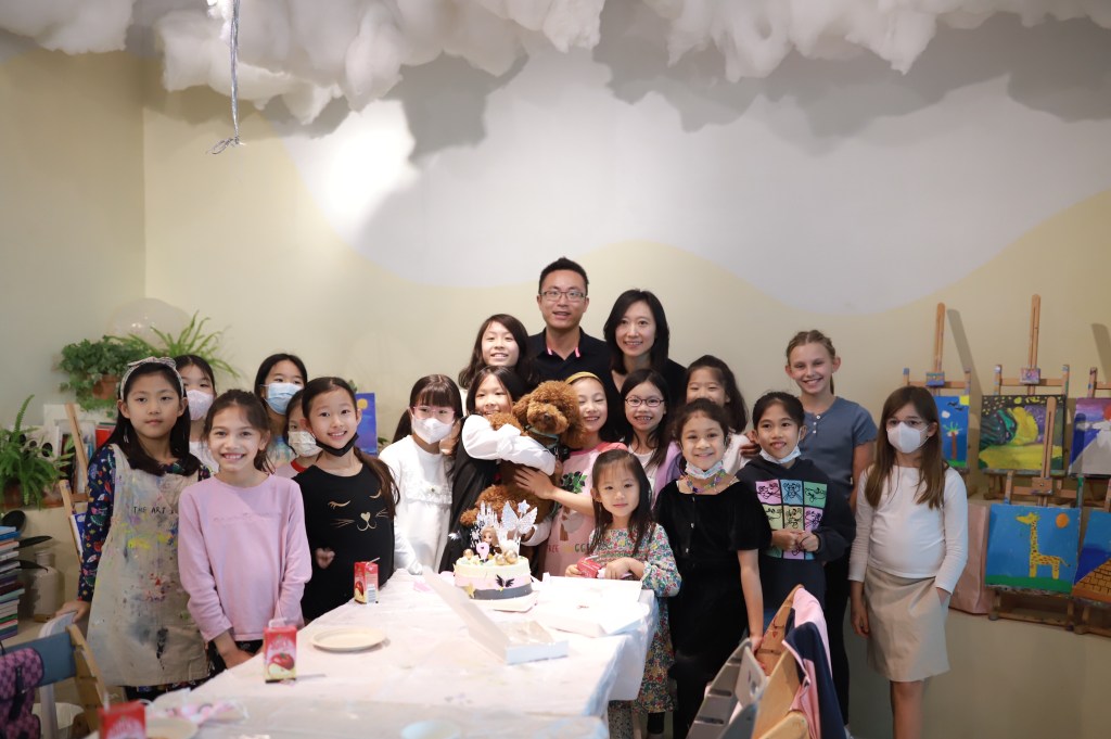 這週末,Chelsea 過九歲生日,在淺水灣 The Pulse 商場裡的畫室舉辦慶生會,邀請同學跟球隊隊友來畫畫、切蛋糕,一同歡度生日。The Pulse 是寵物友善商場,Benji 能在商場裡自由活動,Chelsea 跟 Florence 興奮地帶著 Benji 一起行動,小朋友們十分喜愛 Benji,成為大家的寵物。