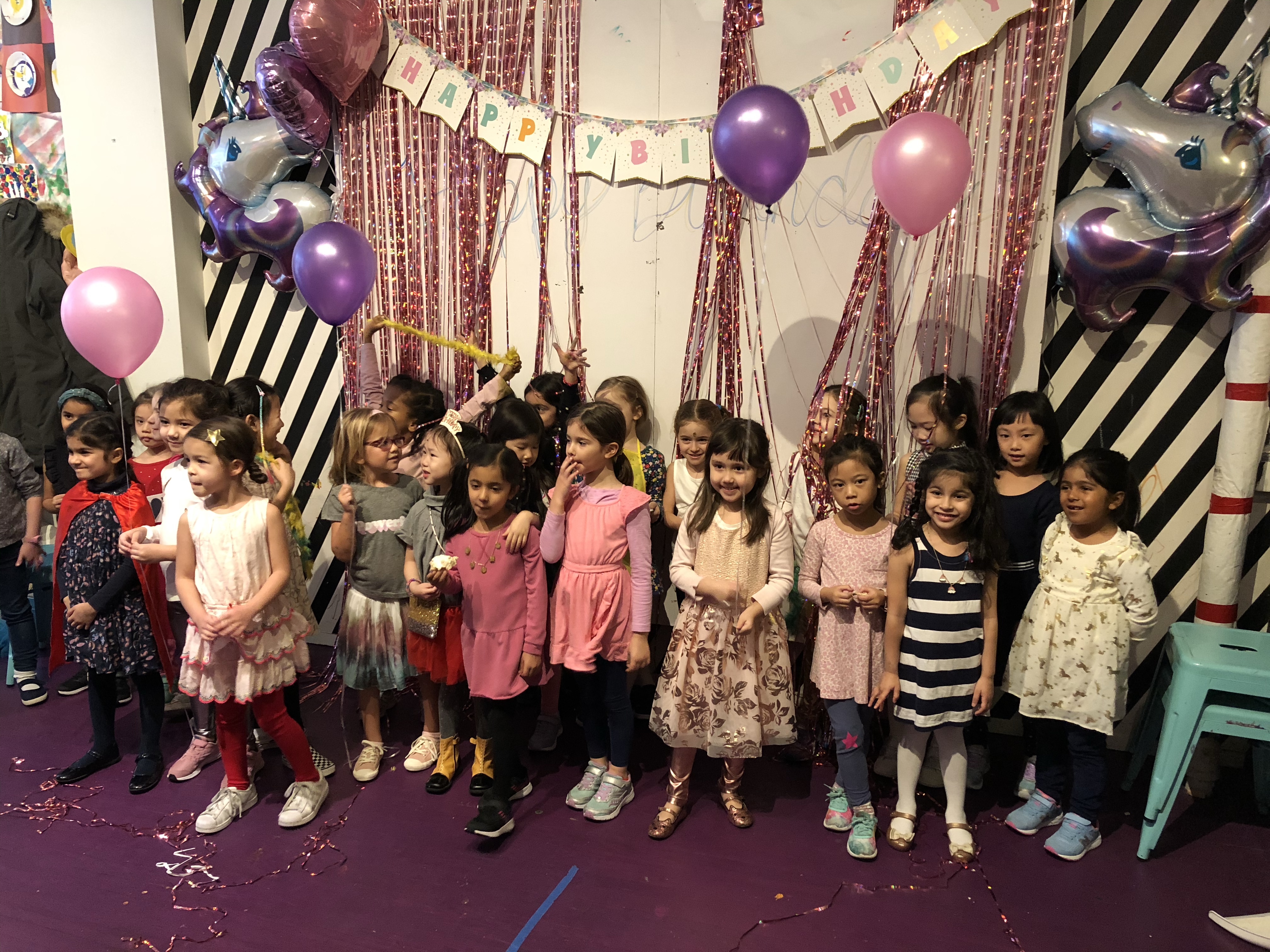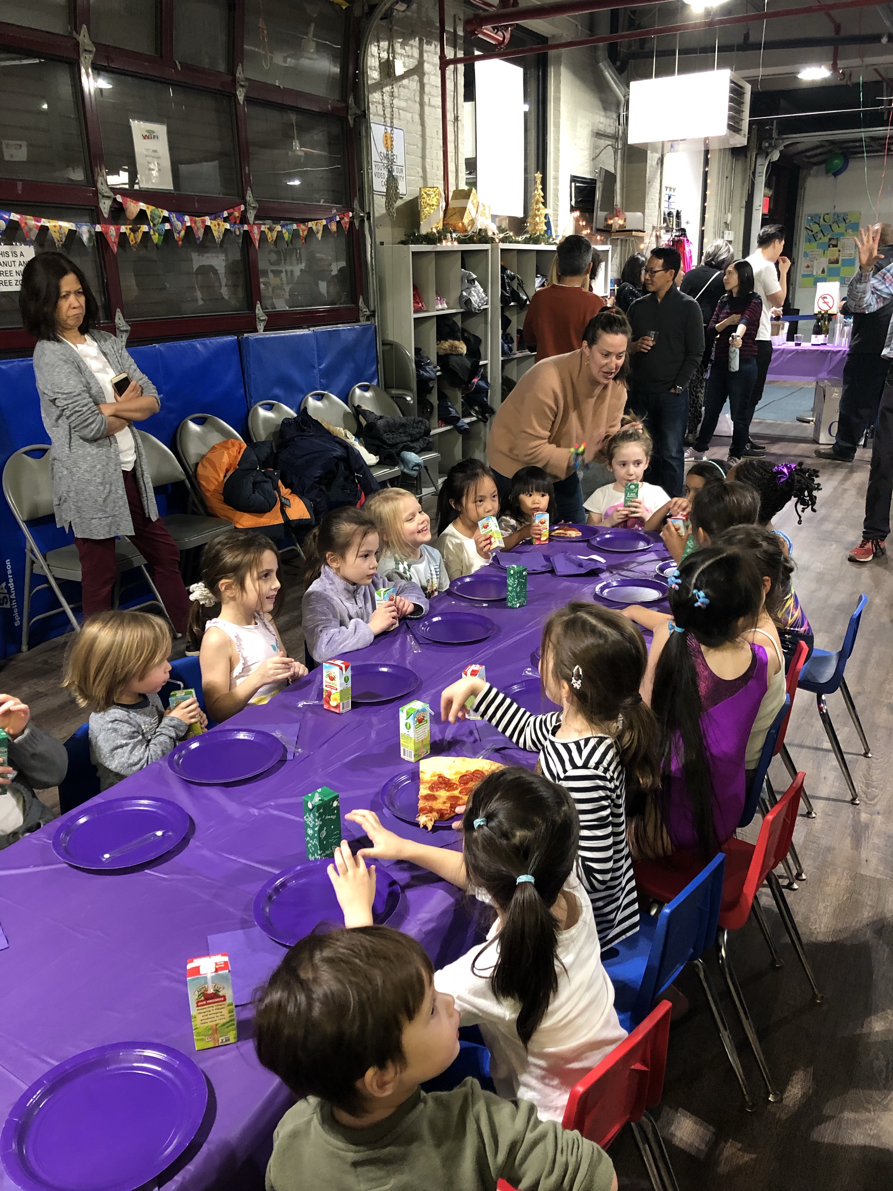 週日,Chelsea 跟 Florence 來參加同學 Sofia 的生日派對,Sofia 是新加坡裔華人,是 Chelsea 在班上最要好的朋友。慶生會在上東區的一個兒童體操館舉辦,小朋友們先在體操墊上玩遊戲、運動翻滾,最後一起吃披薩、切蛋糕,Chelsea 跟 Florence 興奮地與大家同樂。