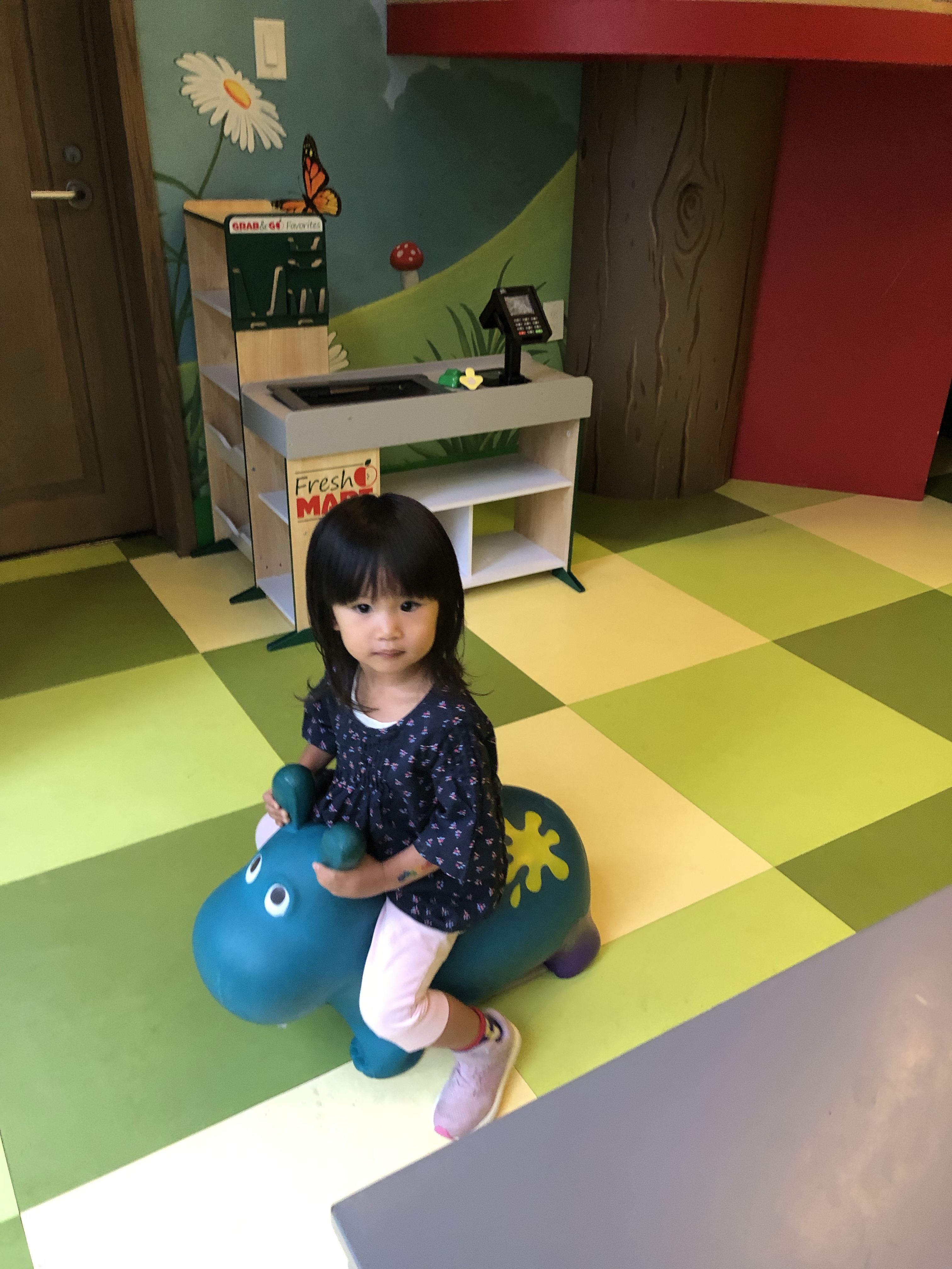 Florence 也跟著姐姐們來遊戲室玩,對各種玩具都感到新奇有趣,玩得不亦樂乎。