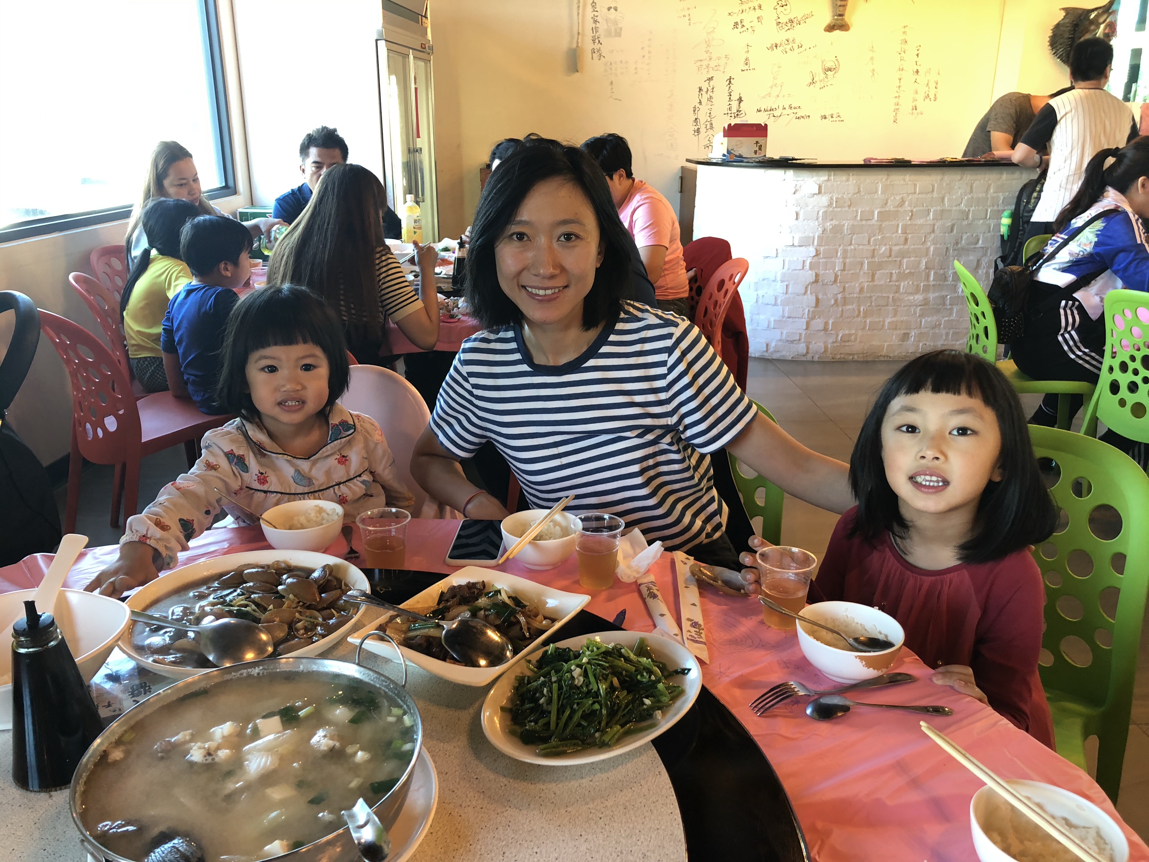 肚子餓了我們就開車到附近漁港的海產店吃新鮮的海鮮,海瓜子、蝦子與老虎斑是 Chelsea 與 Florence 的最愛。