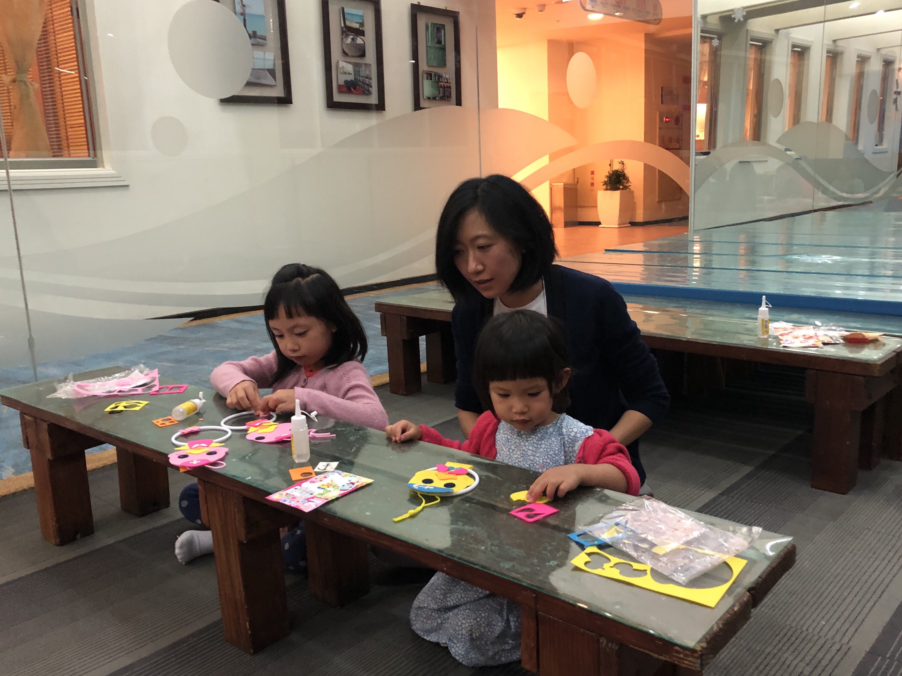 晚上飯店提供小朋友手工課程,姐妹倆動手做勞作,愛不釋手。