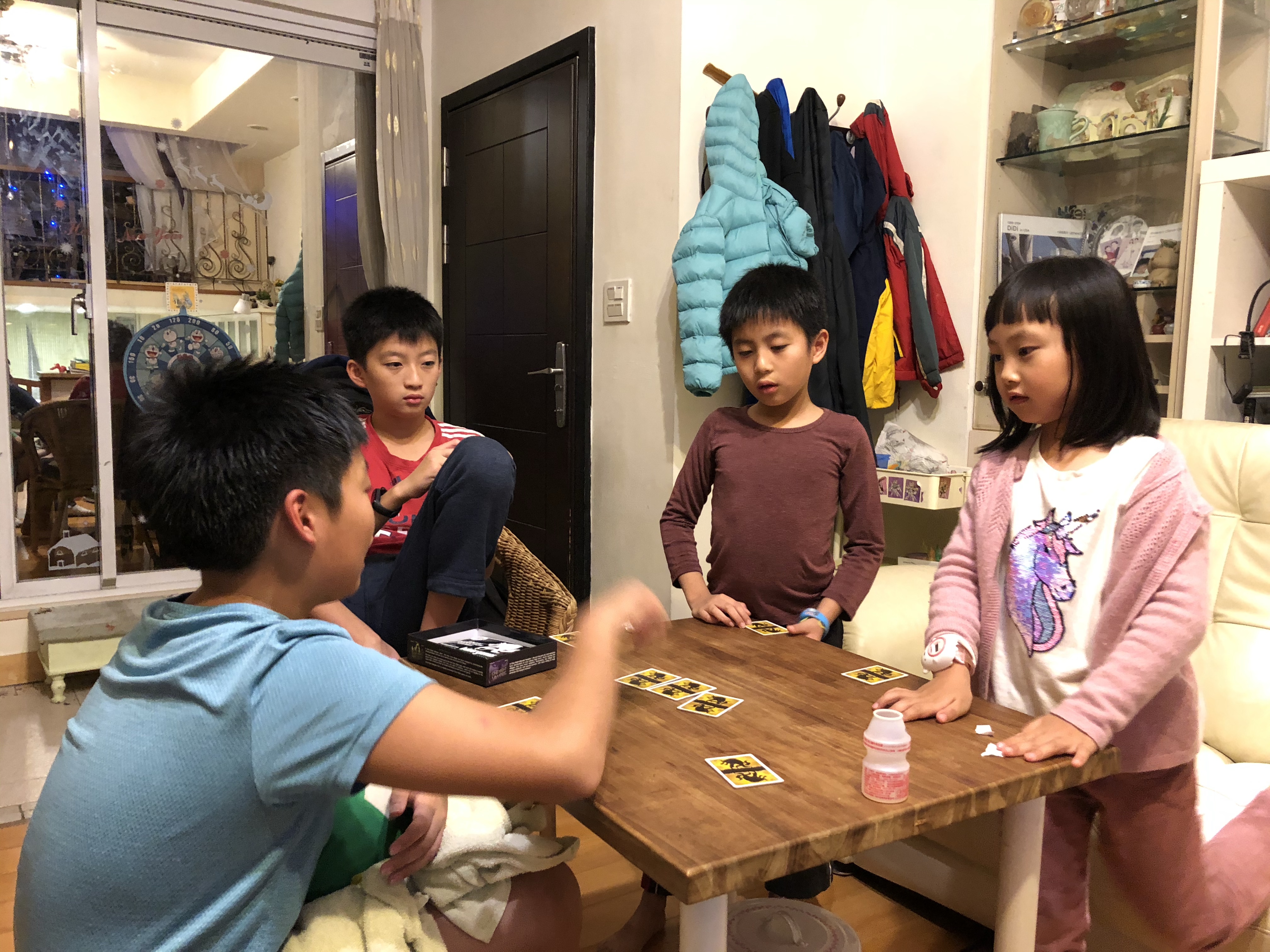 大堂哥翔翔、鳴鳴補習回家後,大家一起玩紙牌遊戲-狼人殺,更是有趣,大夥在開心玩樂中度過了2019 年,迎接2020 新年。