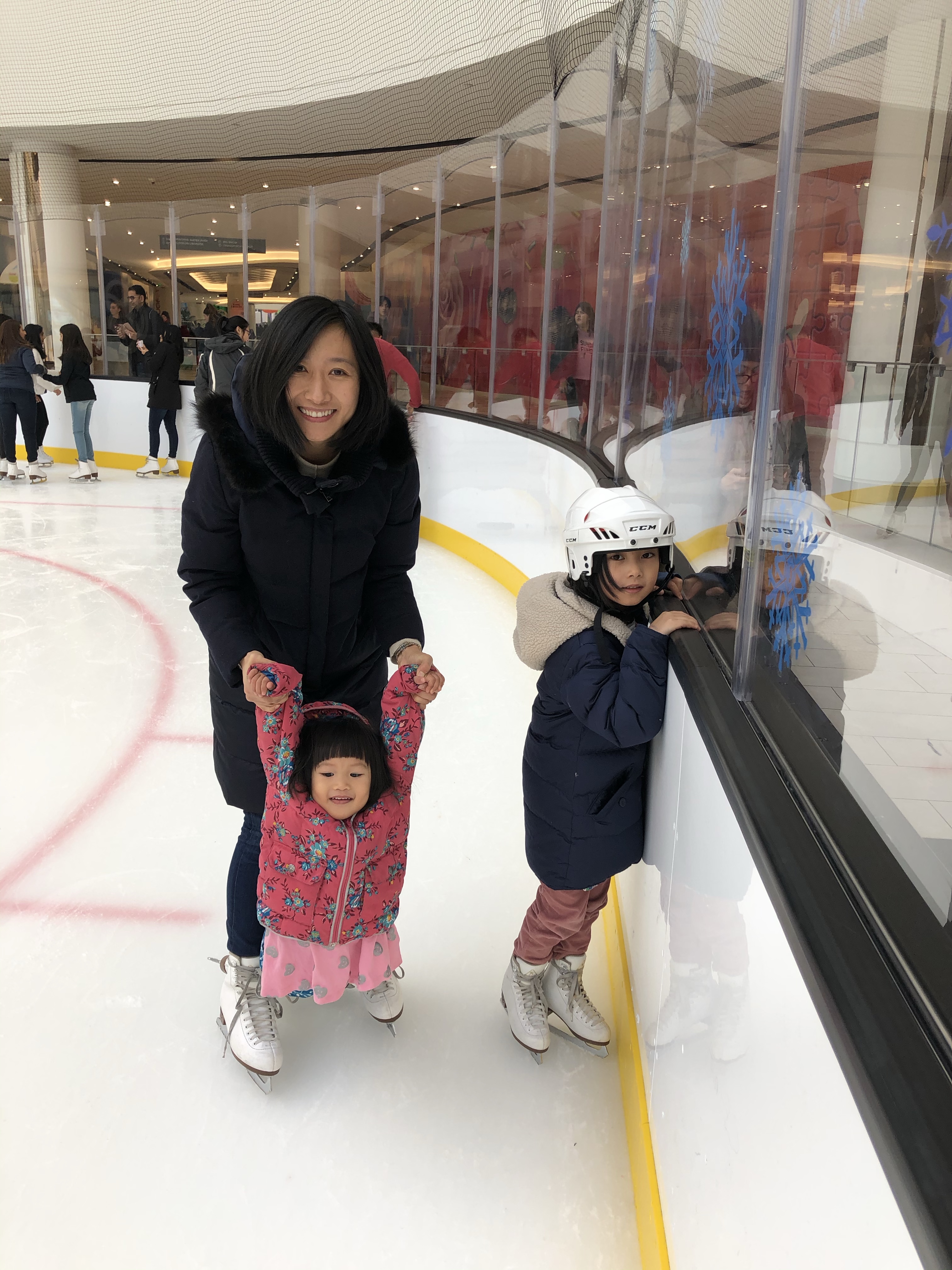 馬丁路德金紀念日,我們到紐澤西新開幕的美國夢商場溜冰,商場裡有室內樂園、水滑梯公園、滑雪坡道與溜冰場,計劃結合休閒娛樂與購物,吸引人氣。目前僅完工開放樂園、滑雪與溜冰等遊樂設施,我們到溜冰場來嚐鮮,偌大嶄新的場地,姐妹倆自在地練習溜冰,意猶未盡地溜了一整天冰,各有很大的進步。