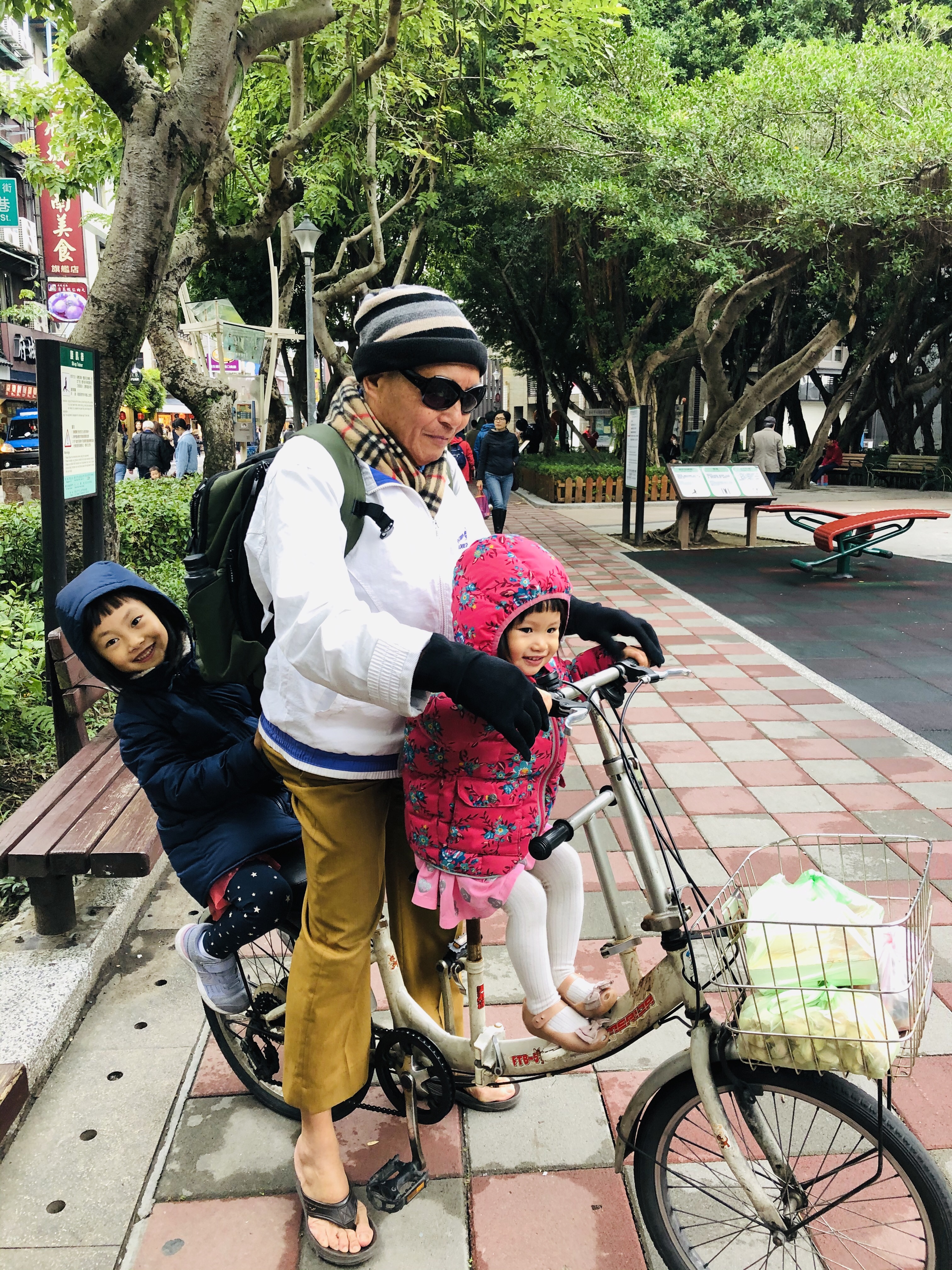 位於家另一個方向的永康街商圈,因為鼎泰豐老店、芒果冰店以及各種台灣美食,更是遊客的必經之地,這天姐妹倆跟著阿公騎車來逛街。