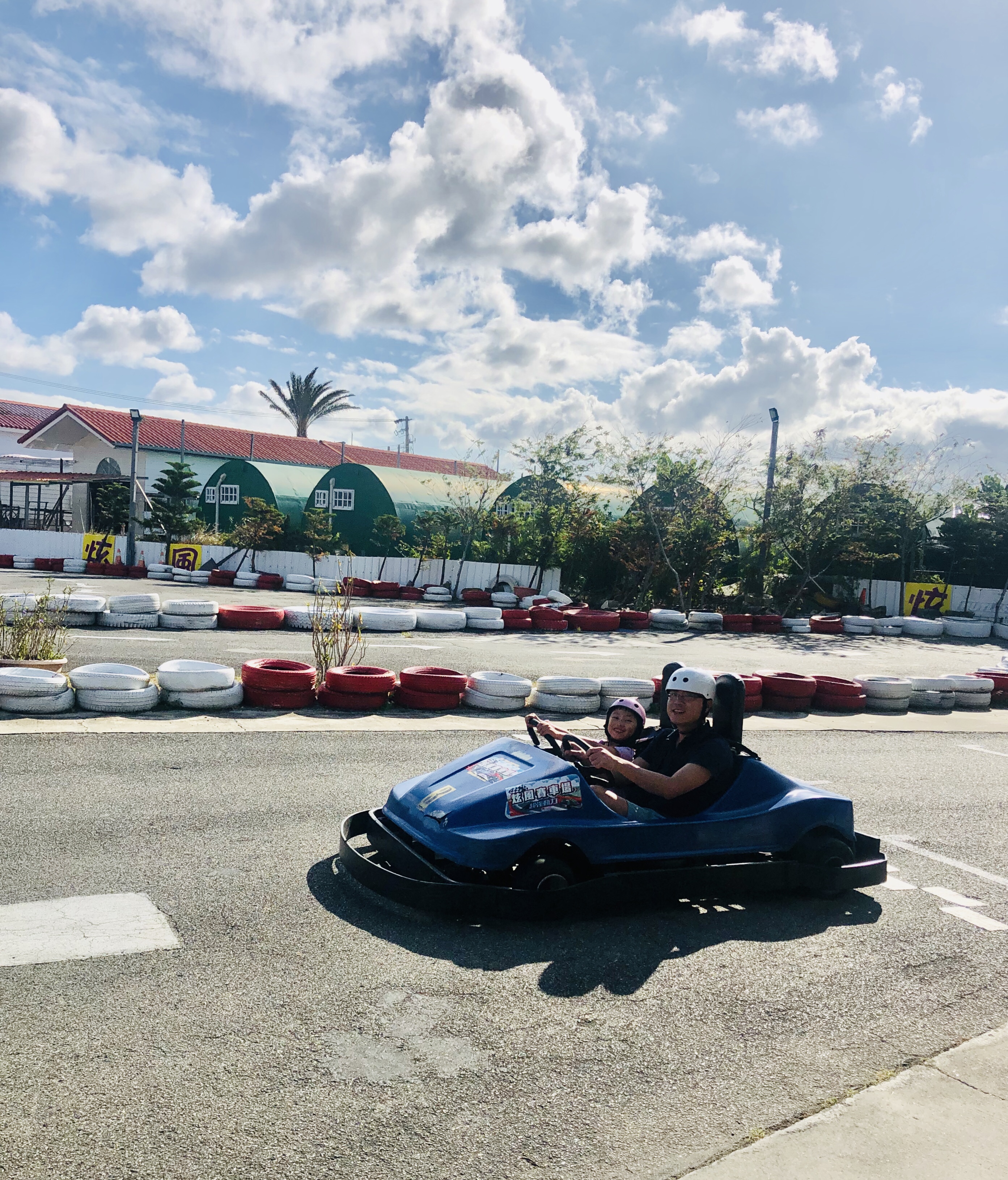 墾丁一帶最近流行卡丁車賽車,喜歡開車的 Chelsea 躍躍欲試,可惜還太小,只能先坐親子車。